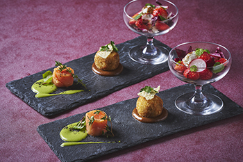イタリア南部で親しまれる、苺とフレッシュチーズの組み合わせを、芳醇なバルサミコソースで爽やかなサラダです。