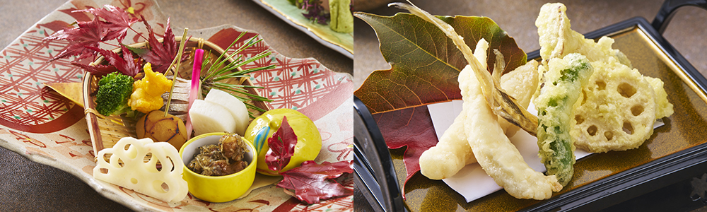 料理長こだわりの和の技が光る「富士会席」は、秋から冬にかけ旬を迎える食材を使用したお料理が勢揃い。