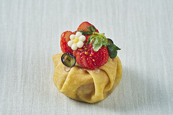 やわらかなクレープで、甘酸っぱいストロベリームースとコクのあるレアチーズをそっと包み込んだ、春限定のスイーツ。