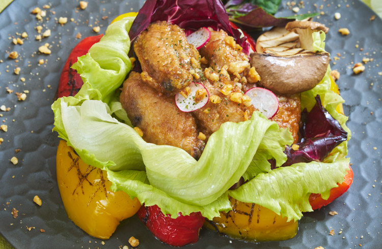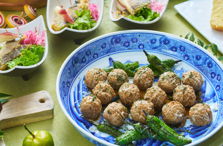 - 自家製照り焼きタレで香ばしく焼き上げた鶏つくねに、マヨネーズ、青のり、刻み青ねぎを添え、タコ焼き風に仕上げた、遊び心あるあふれる一皿です。