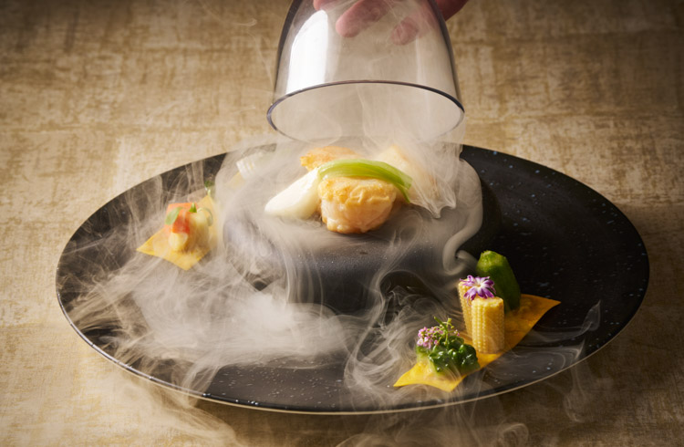 ・北海道産ホタテの陳皮と金華ハムの燻製