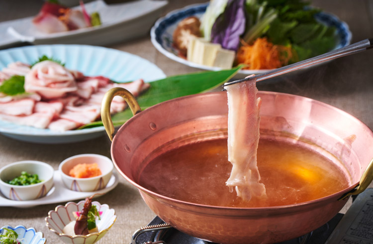 脂の旨味と甘さ、上品の香りが特徴のあぐー豚しゃぶしゃぶも絶品です。
