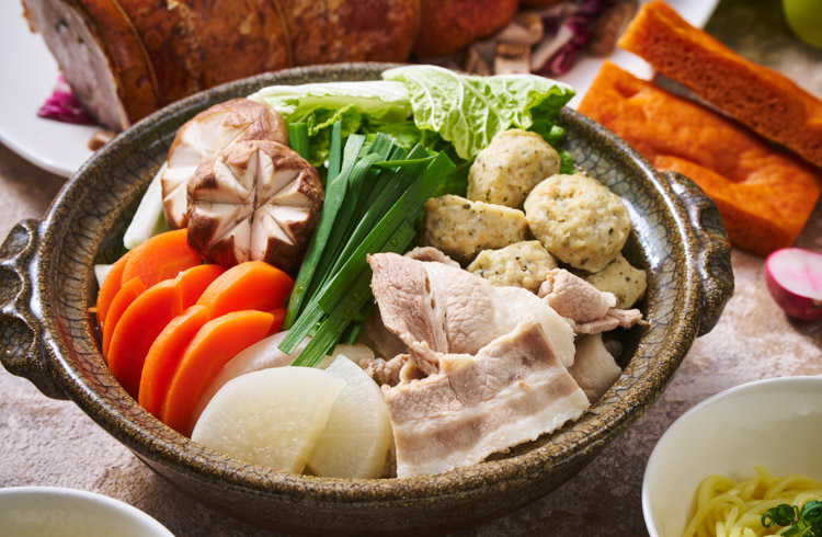きのことサツマイモがゴロゴロ入ったキッシュや仔羊と冬野菜の煮込み、肌寒くなる季節にぴったりなちゃんこ鍋や石狩鍋も具だくさんで嬉しい一品。
